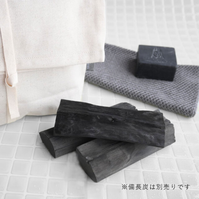 耐久性・吸水性・通気性に優れた綿麻キャンバス生地を使用し、入浴用備長炭の専用ケースとしてご用意いたしました。 丈夫で、衛生的にお使いいただけます。