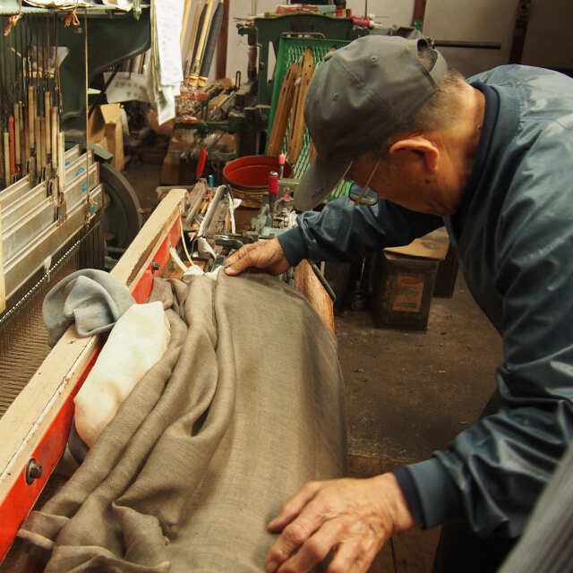 ゆっくりと織りあげることで、糸に大きなストレスがかからず、素材の良さを最大限にいかしたやさしい風合いに仕上がります。