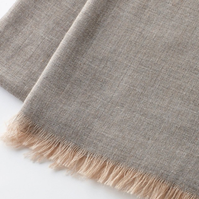 ヘリンボーン織りにより、ブラウンコットンと備長炭グレーの織りなす自然の色合いを上品に仕上げています。