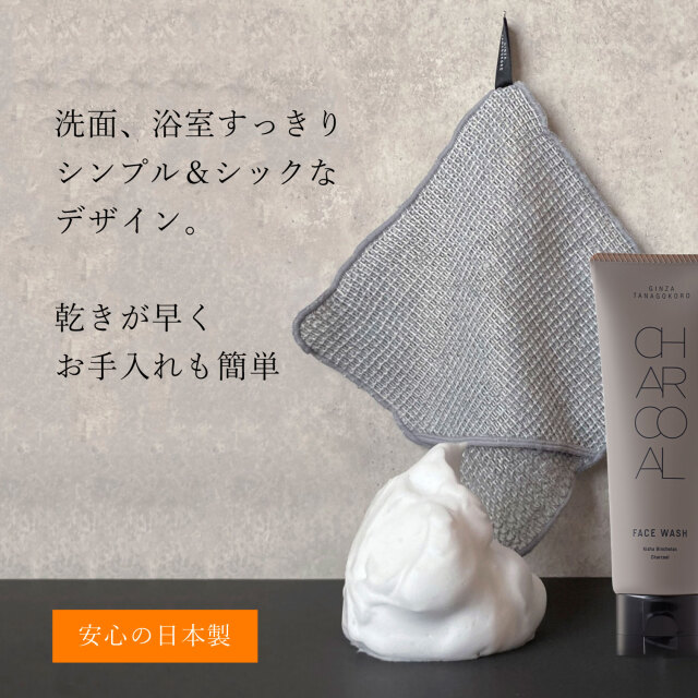 | 配合成分 / 素材 | チャコールフェイスウォッシュ:水、PEG-8、ステアリン酸、ミリスチン酸、水酸化K、ラウリン酸、グリセリン、炭、ホホバ種子油、チャ葉エキス、ドクダミエキス、ハトムギ種子エキス、シャクヤク根エキス、ユキノシタエキス、BG、ポリクオタニウム-7、ステアリン酸グリセリル(SE)、フェノキシエタノール、EDTA-2Na、ラウロイルグルタミン酸ジ、(フィトステリル/オクチルドデシル)、エタノール チャコールラザークロス:ナイロン47%、ポリエステル39%、備長炭繊維14% |